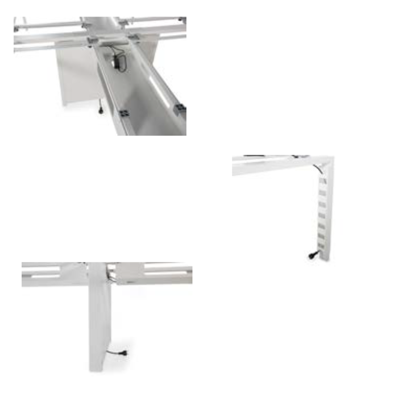 Accesorios: Dispone de varios sistemas de electrificación, como son la canaleta vertical de cableado y la bandeja de electrificación. Además dispone de faldón de melamina, panel separador de melamina y panel separador acústico.