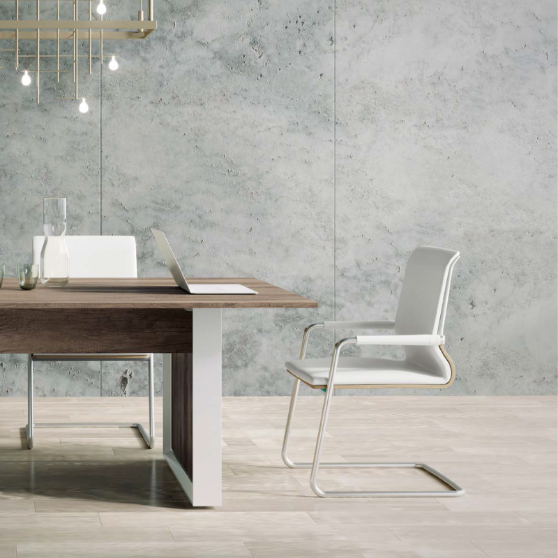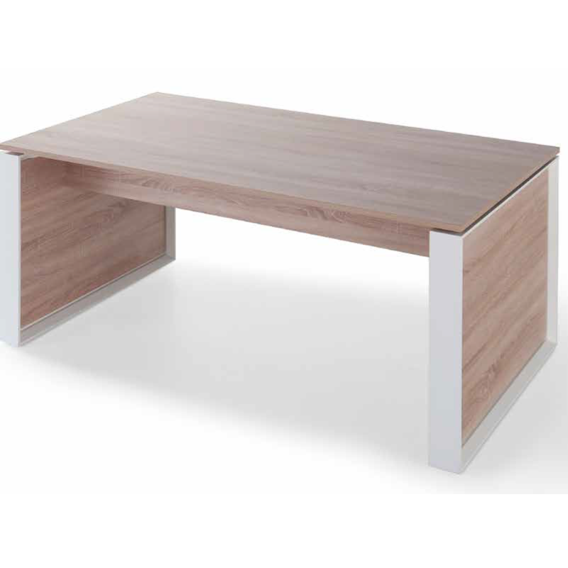 LATERAL PANEL MESA: Fabricados en M.D.F. de 28mm de grosor. Están lacados en distintos acabados utilizando laca con base al agua y revestido por ambos lados con panel de partículas aglomeradas de 10mm de espesor. A su vez, están revestidos por ambos lados con papel decorativo impregnado en resinas melamínicas.